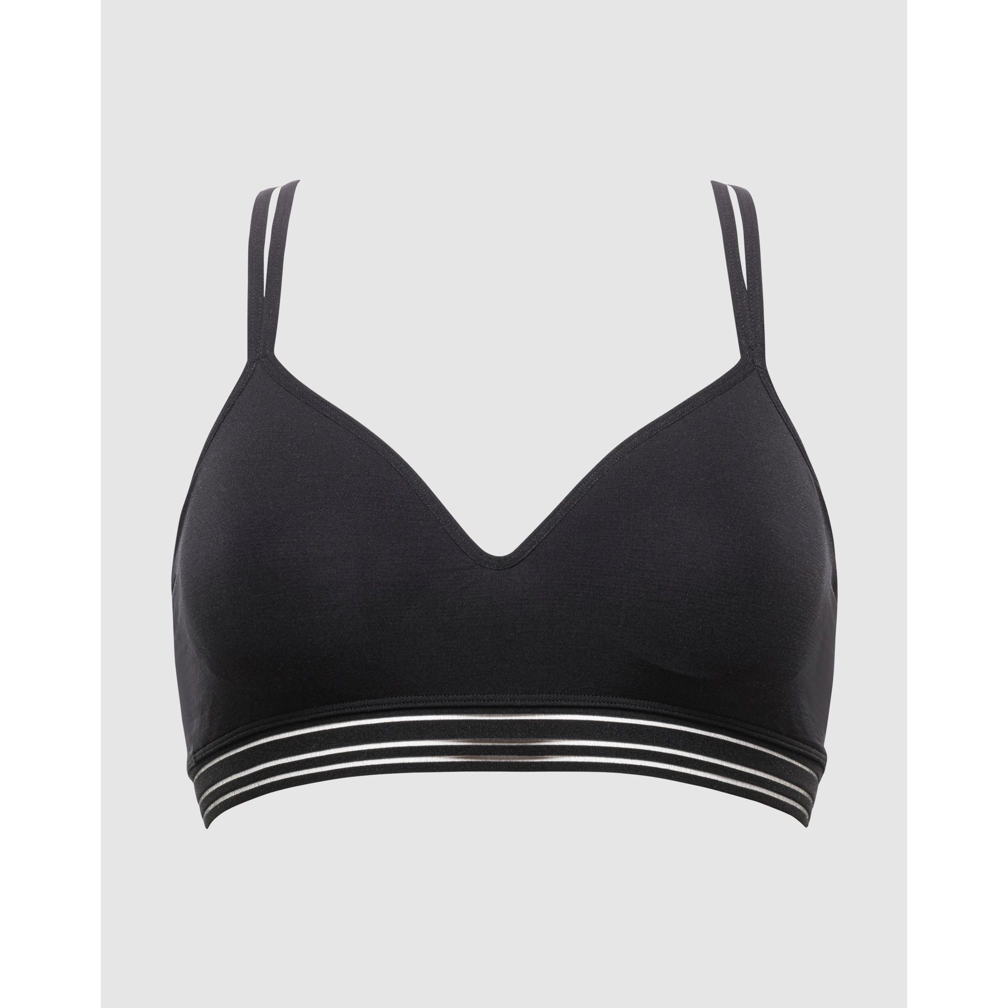 The ultimate supportive yet lightweight bra for everyday wear, this pull-on design is fastening free and has multiway double straps that allow it to optionally be worn as a racerback bra. Moulded cups and seamless sides ensure a perfectly smooth shape under your clothing, and it's finished with a sheer-striped longline band for a modern touch.