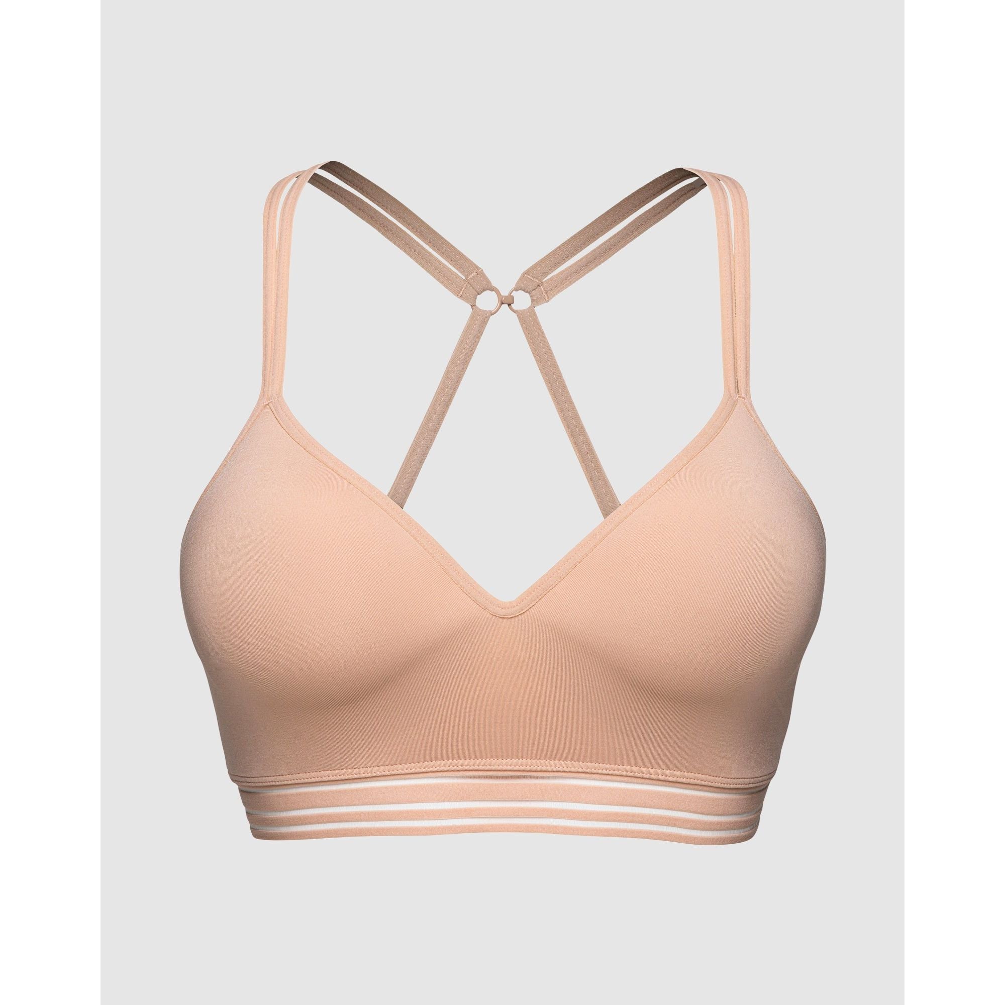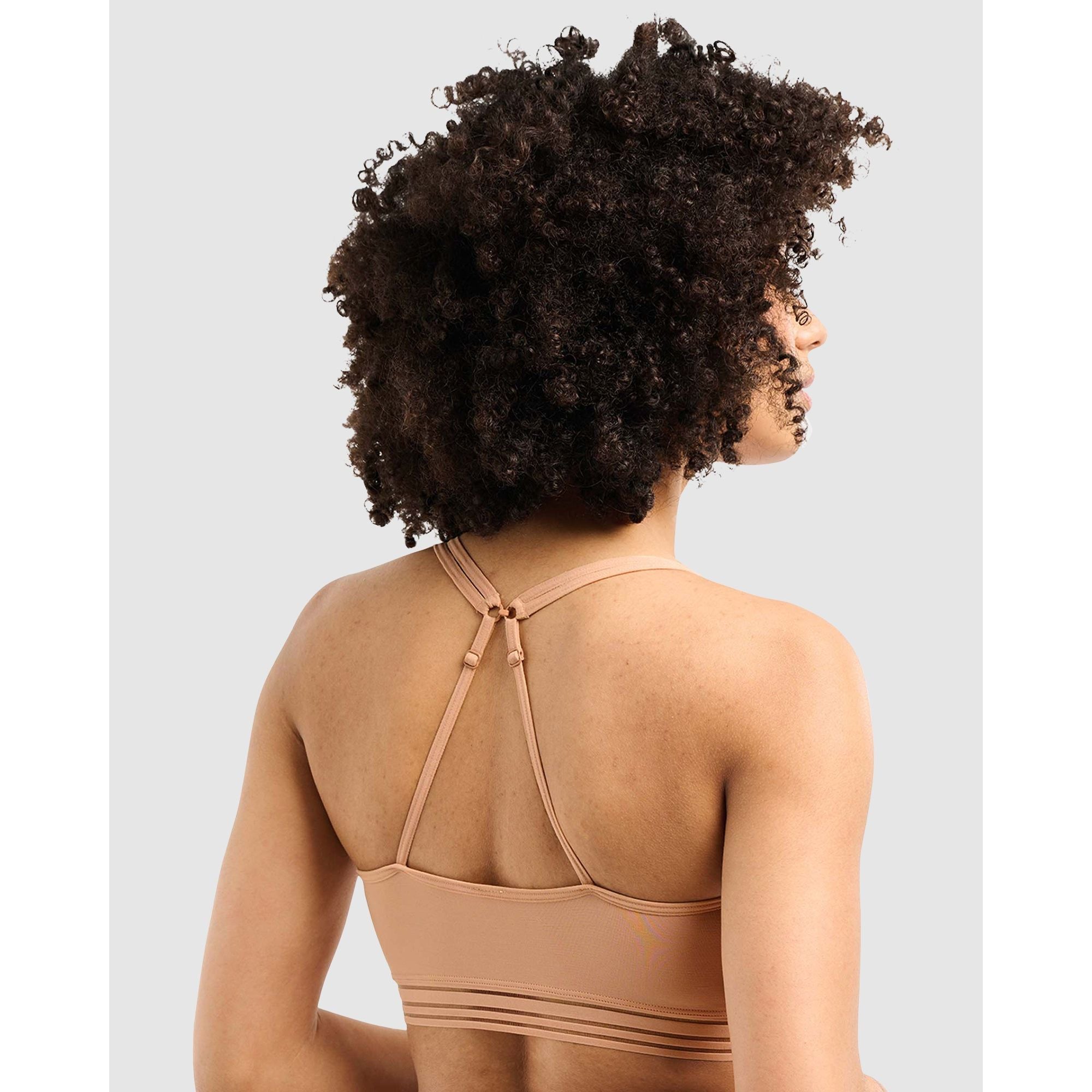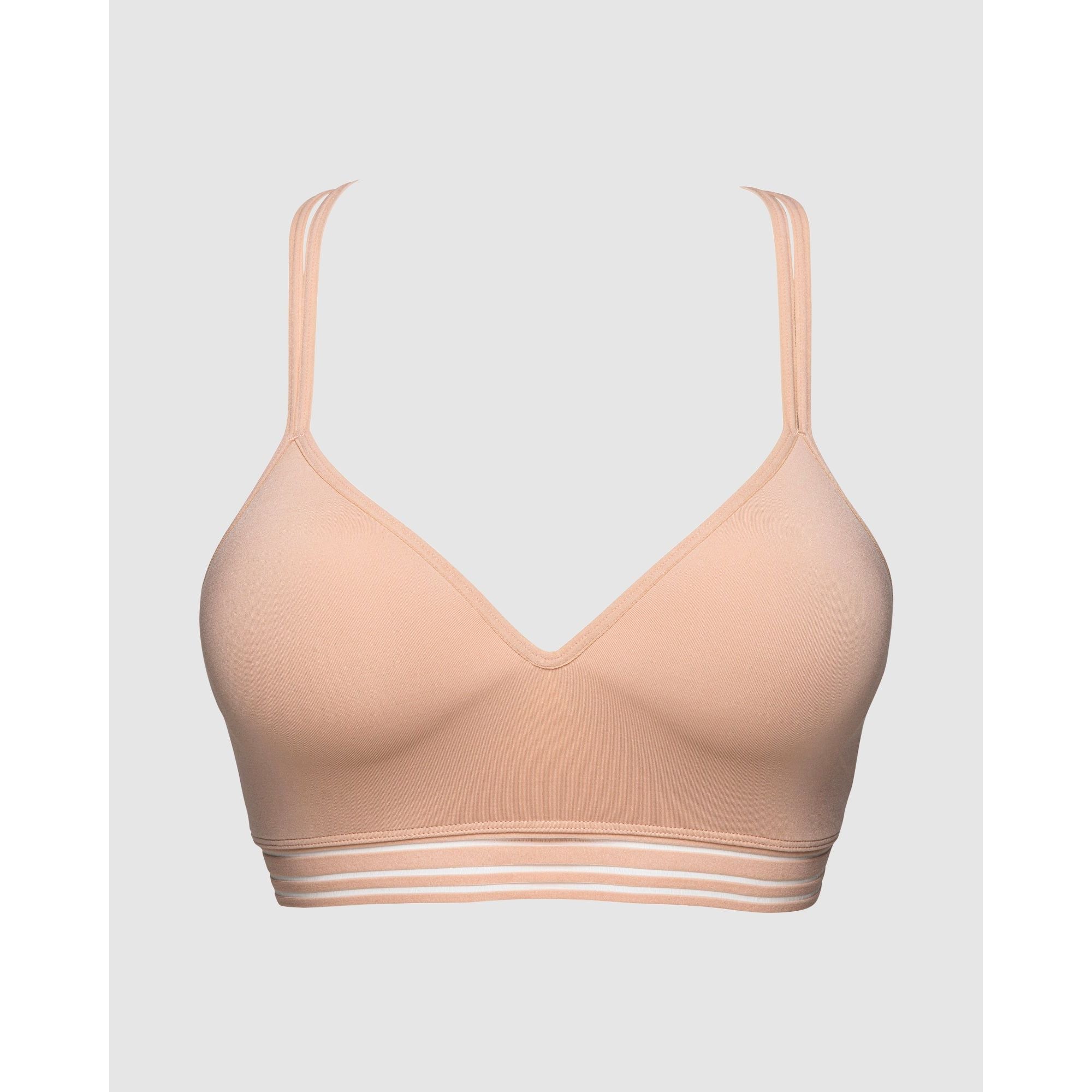 The ultimate supportive yet lightweight bra for everyday wear, this pull-on design is fastening free and has multiway double straps that allow it to optionally be worn as a racerback bra. Moulded cups and seamless sides ensure a perfectly smooth shape under your clothing, and it's finished with a sheer-striped longline band for a modern touch.