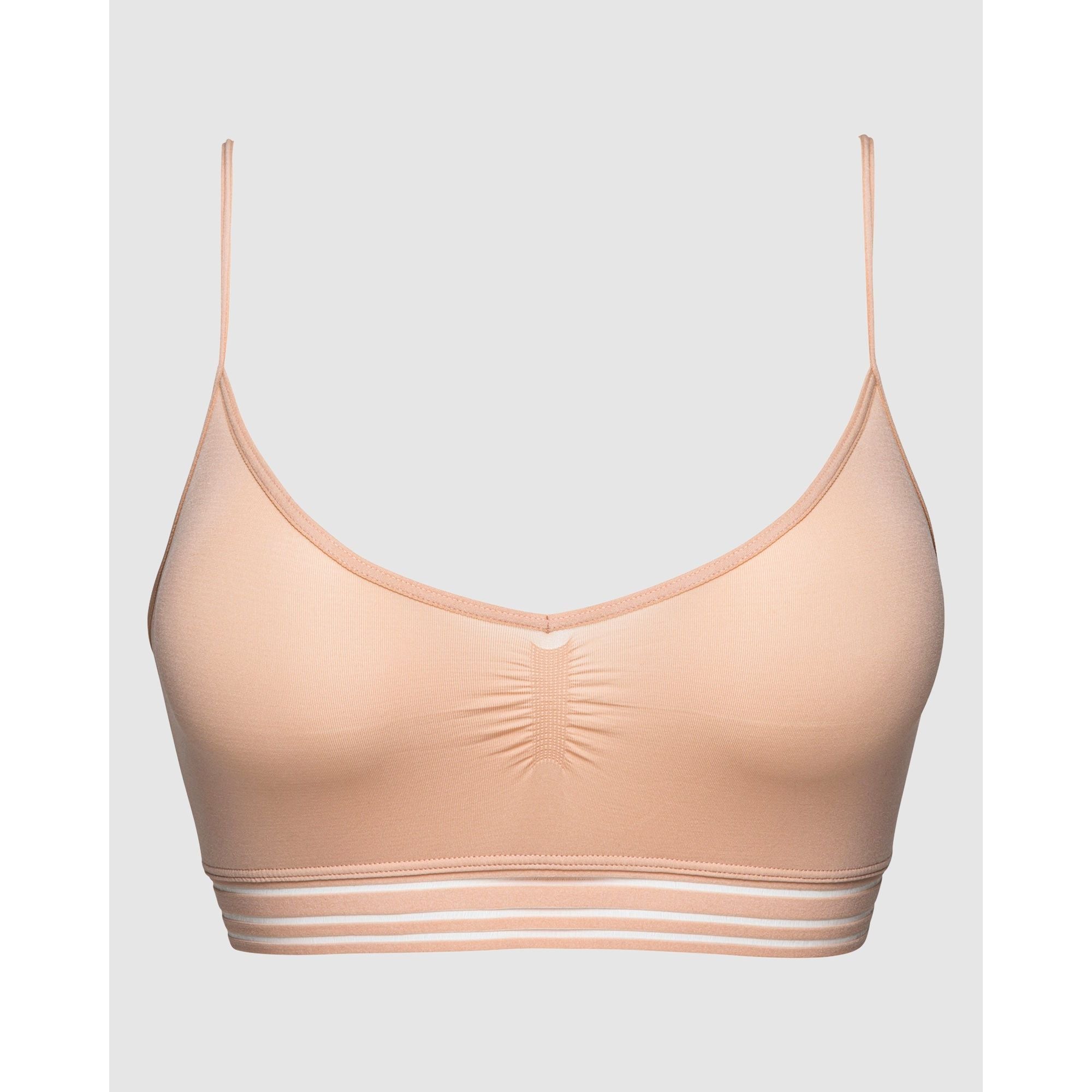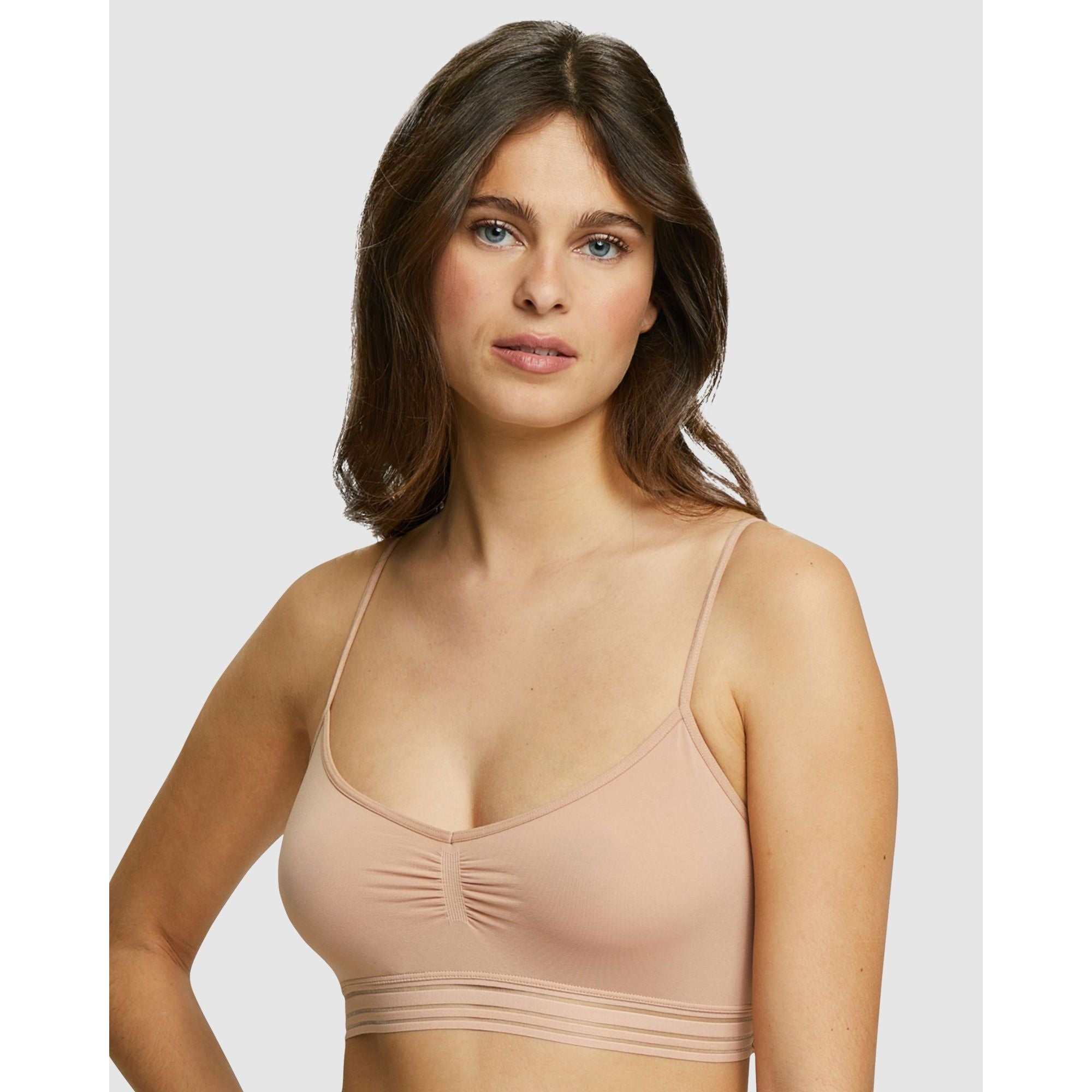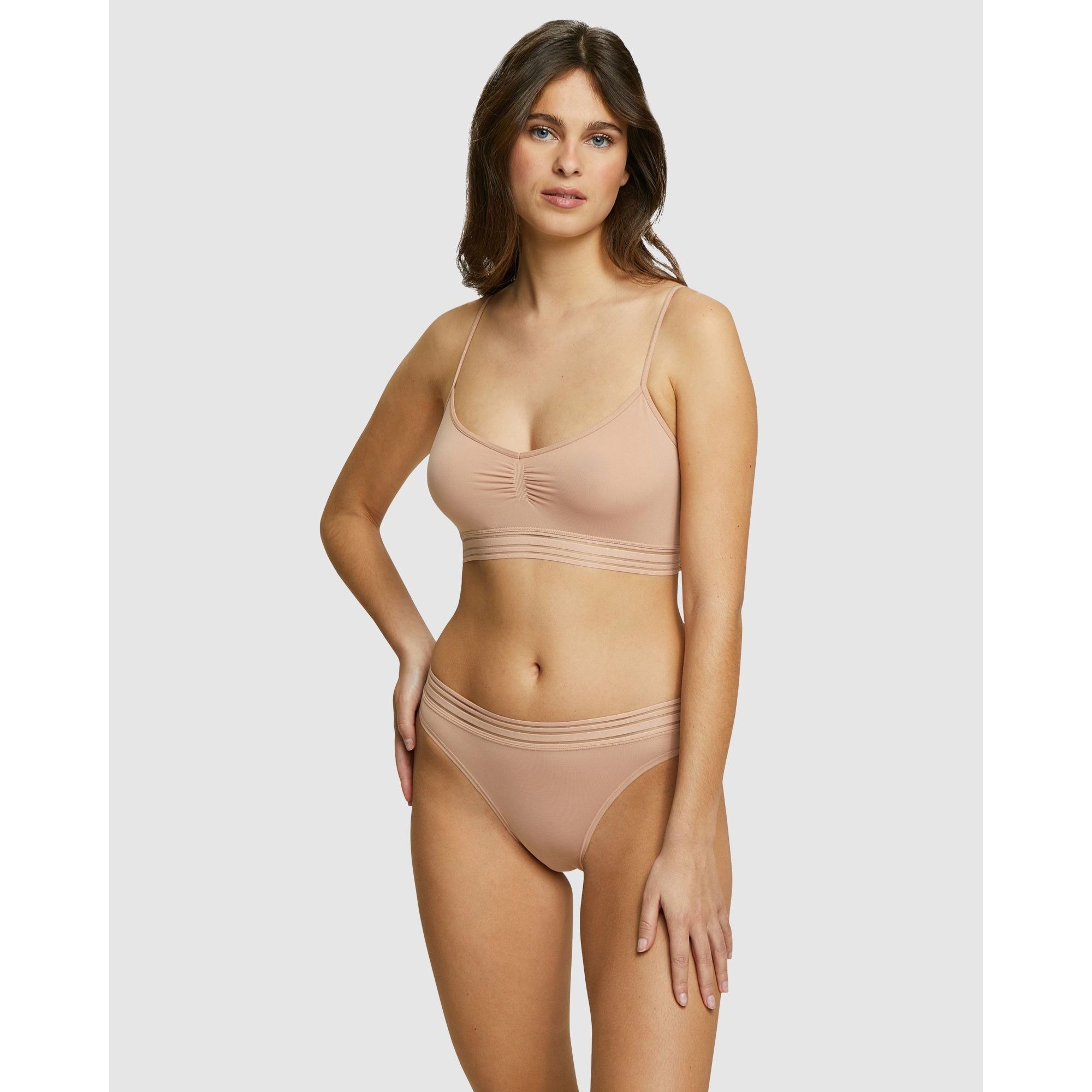 Whether you're looking for the perfect lounge bra or you want a simple crop top bralette that will provide light support for everyday wear, you'll love this stretchy microfibre bralette for its comfort factor. It's an unpadded, wireless bra made from circular knit fabric for total freedom of movement, and features a ruched centre-front for enhanced shaping, plus a sheer-striped band for a chic, modern look.